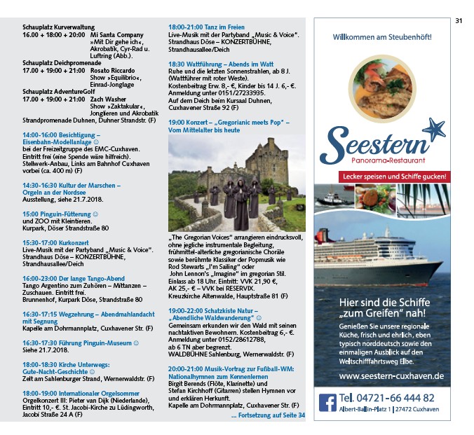 Kostenbeitrag Erw. 8,- ¤, Kinder bis 14 J. 6,- ¤.