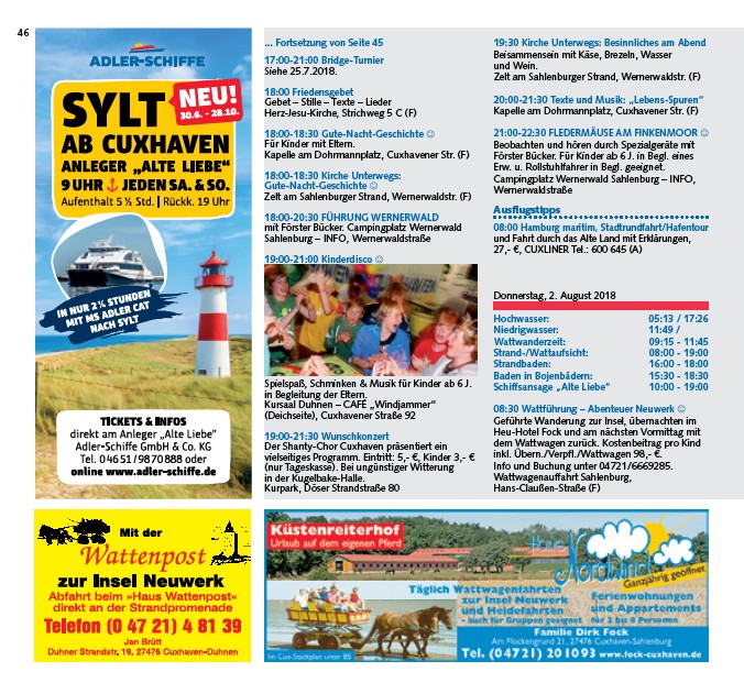 Info und Buchung unter 04721/6669285.
