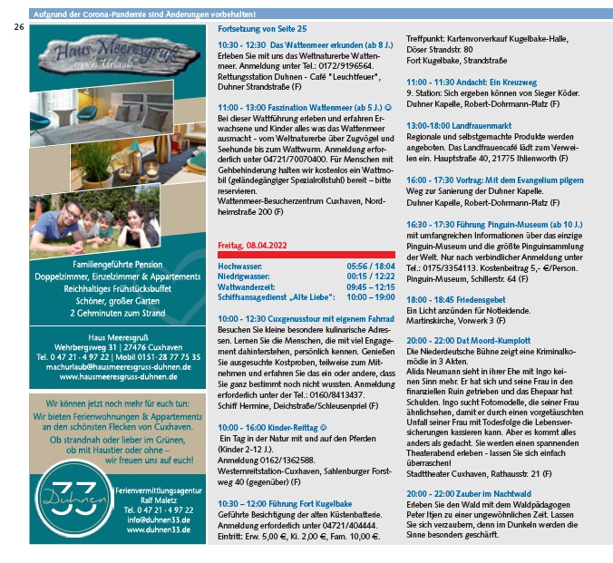 Aufgrund der Corona-Pandemie sind Änderungen vorbehalten! 10:30 - 12:30 Das Wattenmeer erkunden (ab 8 J.)