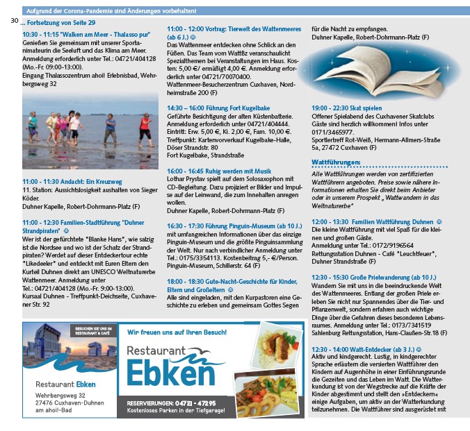 Anmeldung erforderlich unter Tel.: 04721/404128