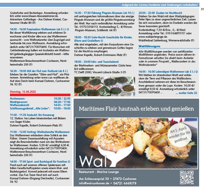 Aufgrund der Corona-Pandemie sind Änderungen vorbehalten!