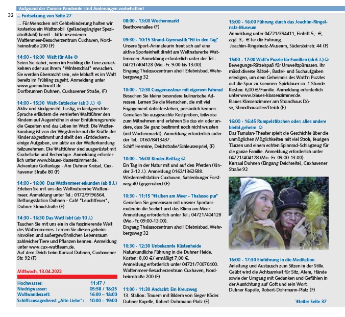 Anmeldung erforderlich unter Tel.: 04721/404128