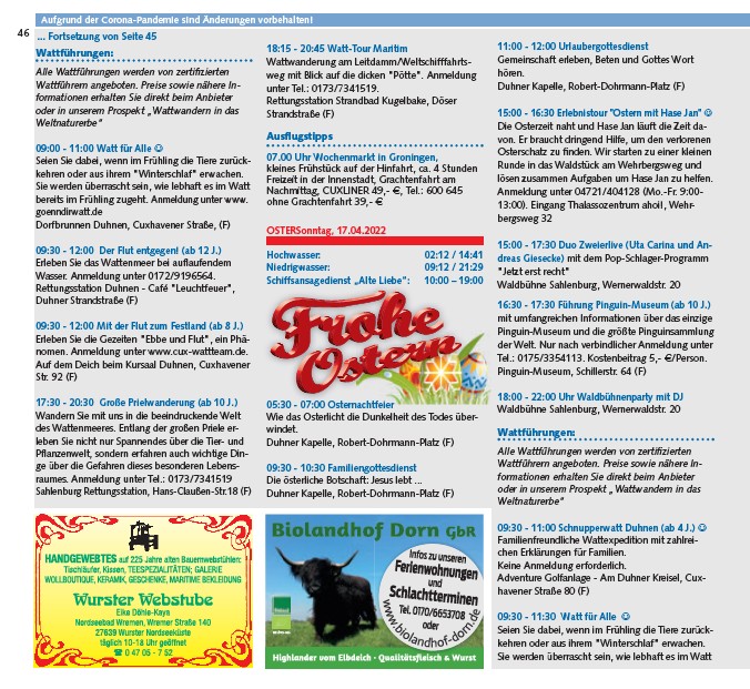 Aufgrund der Corona-Pandemie sind Änderungen vorbehalten! Wattführungen:
