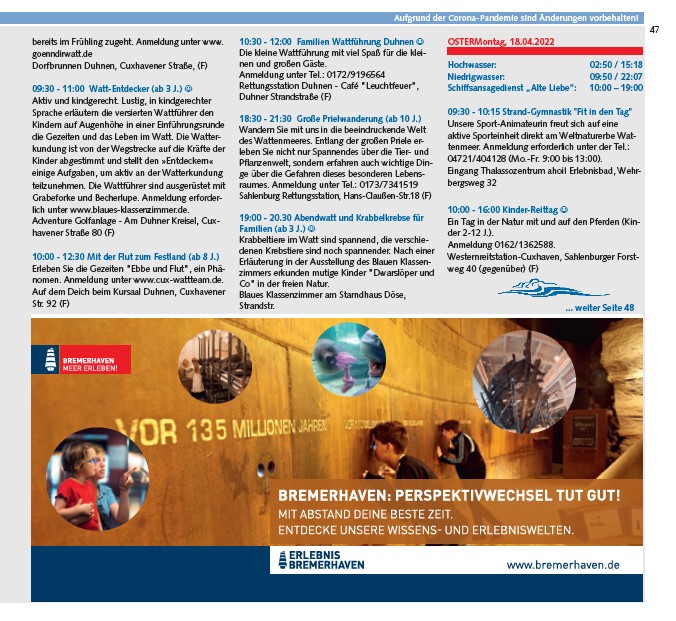 04721/404128 (Mo.-Fr. 9:00 bis 13:00).
