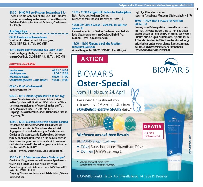 Anmeldung erforderlich unter Tel.: 04721/404128