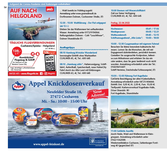 Aufgrund der Corona-Pandemie sind Änderungen vorbehalten! ... Watt bereits im Frühling zugeht.
