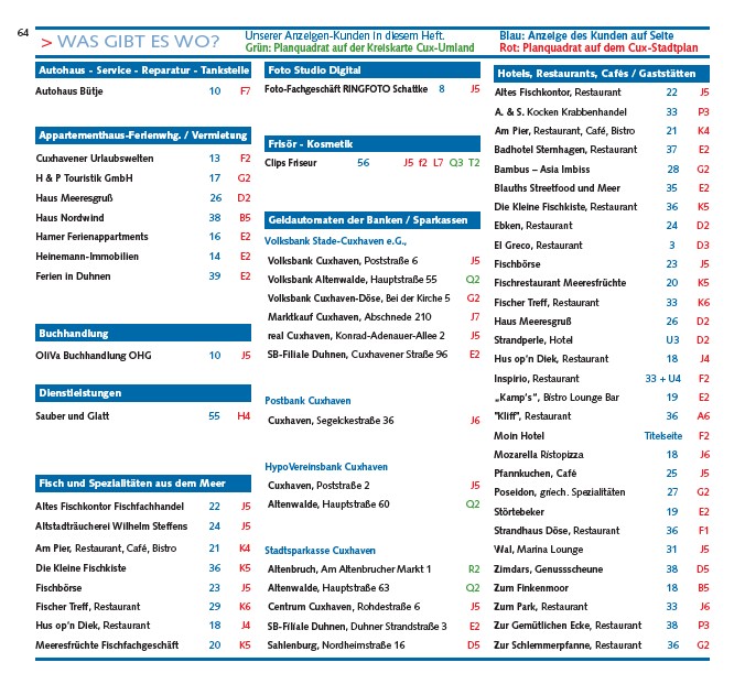 > Was gibt es wo? Blau: Anzeige des Kunden auf Seite
