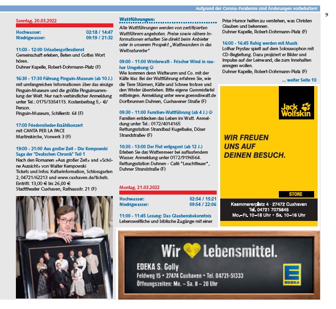 2, 04721/62213 und www.cuxhaven.de/tickets.