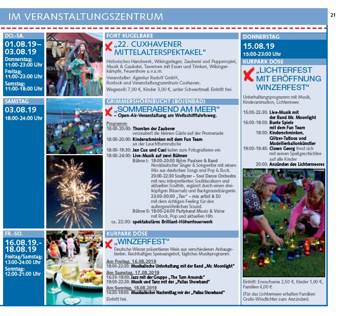 Rostock und Veranstaltungszentrum Cuxhaven.