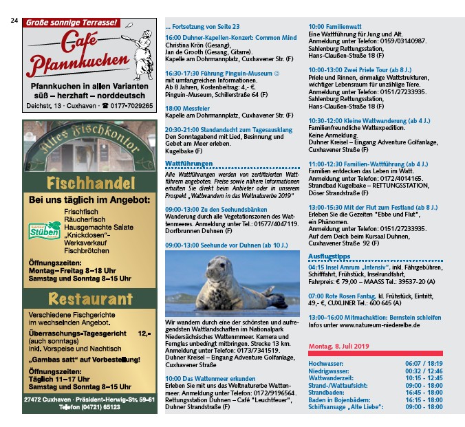 Strand-/Wattaufsicht: 09:00 - 18:00