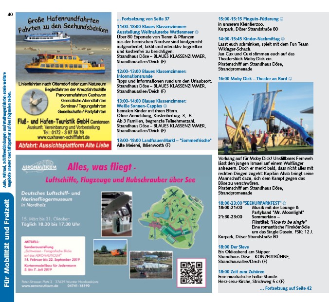 Für Mobilität und Freizeit Auto. Fahrrad, Schiffsverbindungen und Wattwagenfahrten sowie weitere