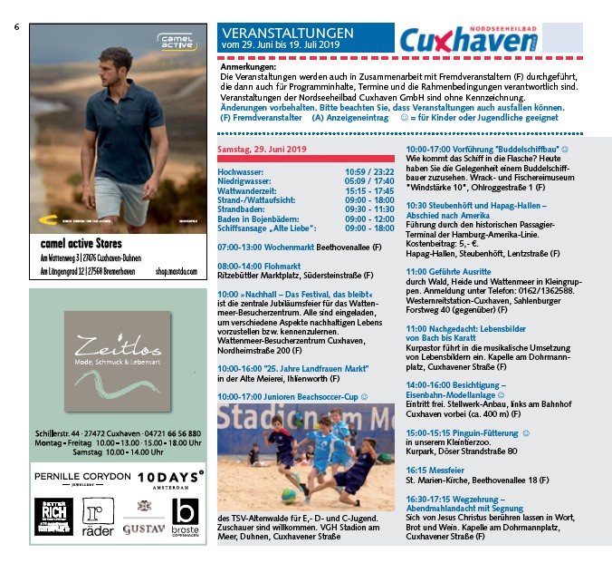 Veranstaltungen der Nordseeheilbad Cuxhaven GmbH sind ohne Kennzeichnung.