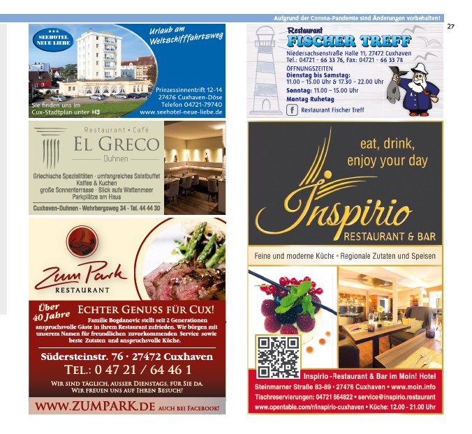 27 Aufgrund der Corona-Pandemie sind Änderungen vorbehalten!