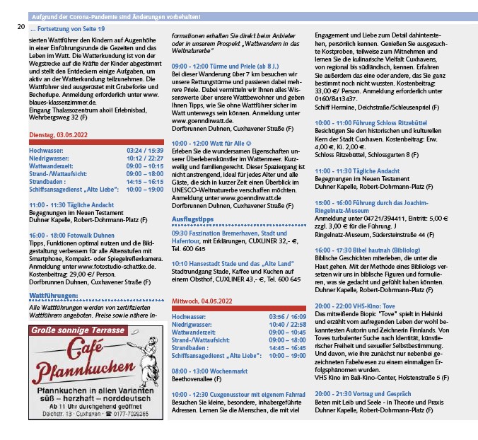 Aufgrund der Corona-Pandemie sind Änderungen vorbehalten! ... Fortsetzung von Seite 19