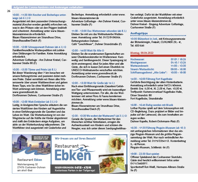 Strand-/Wattaufsicht: 09:00 – 18:00
