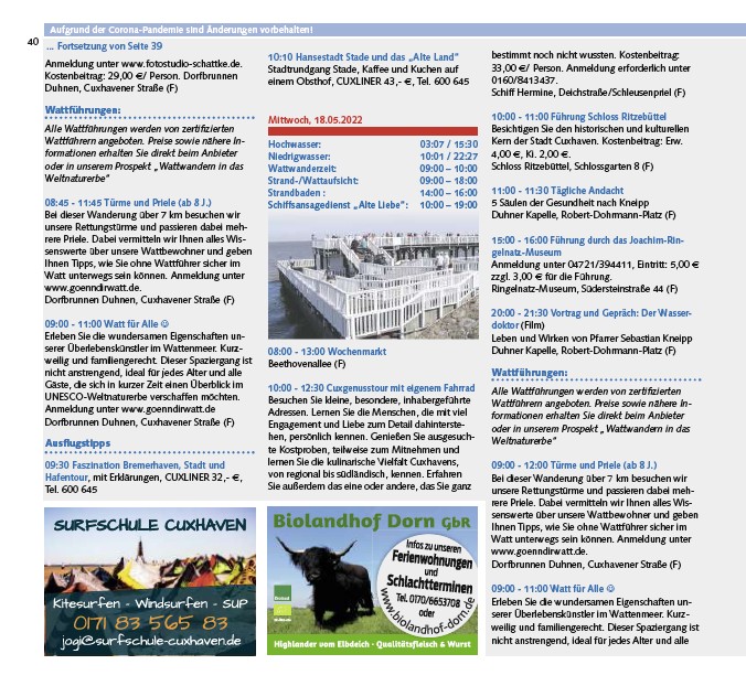 Kern der Stadt Cuxhaven. Kostenbeitrag: Erw.