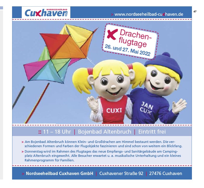 > Am Bojenbad Altenbruch können Klein- und Großdrachen am Himmel bestaunt werden. Die verschiedenen
