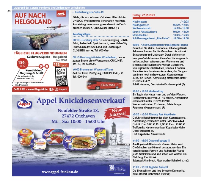 Aufgrund der Corona-Pandemie sind Änderungen vorbehalten! Gäste, die sich in kurzer Zeit einen Überblick im