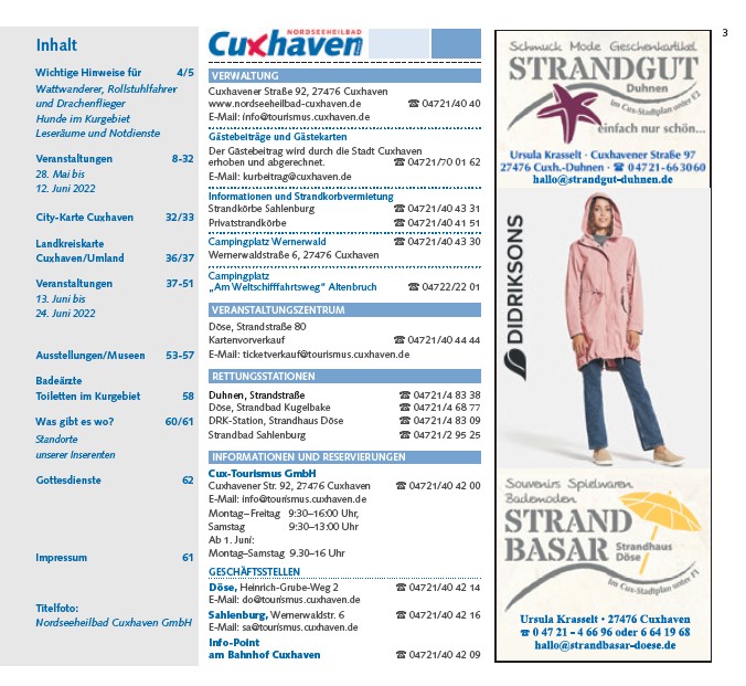 E-Mail: ticketverkauf@tourismus.cuxhaven.de