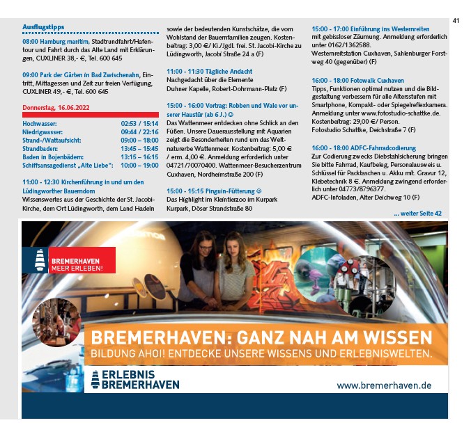 / erm. 4,00 J. Anmeldung erforderlich unter