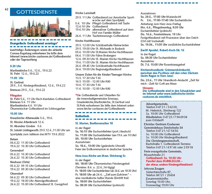 Internet (www.kirche-cuxhaven.de/Gottesdienste)