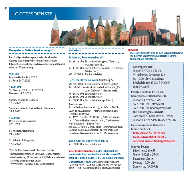 Internet (www.kirche-cuxhaven.de/Gottesdienste)