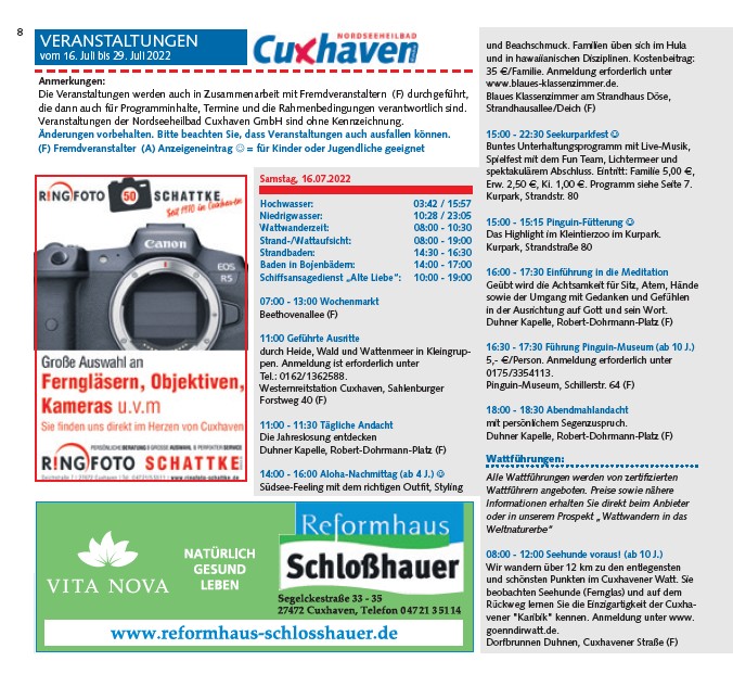 Veranstaltungen der Nordseeheilbad Cuxhaven GmbH sind ohne Kennzeichnung.