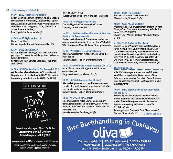 Erw. 7,50 J/ Ki. 5,00 '. Anmeldung unter Tel.:
