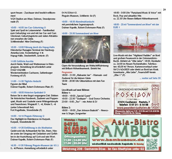 04721/4243820 oder direkt an Bord/am Kiosk.