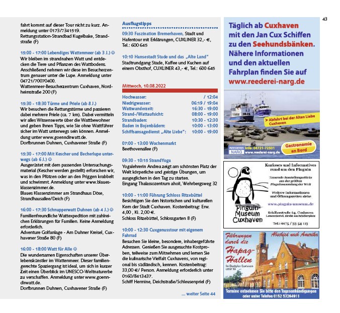 Strand-/Wattaufsicht: 08:00 - 19:00