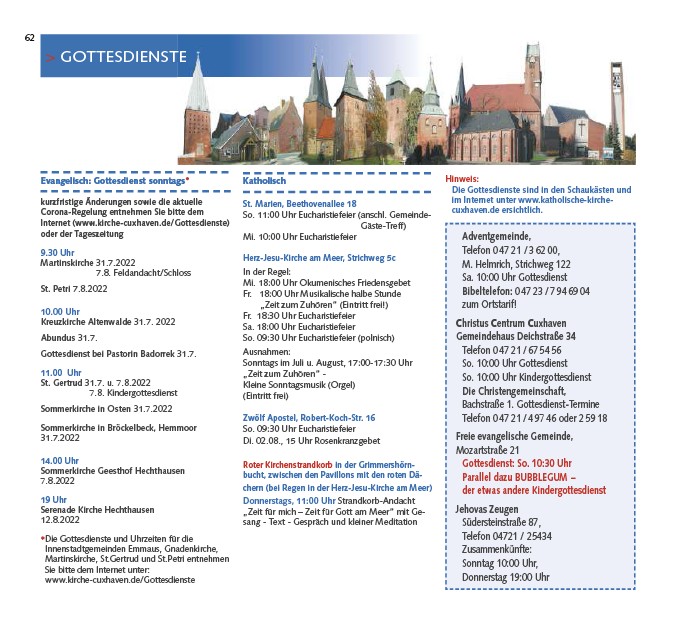 Internet (www.kirche-cuxhaven.de/Gottesdienste)