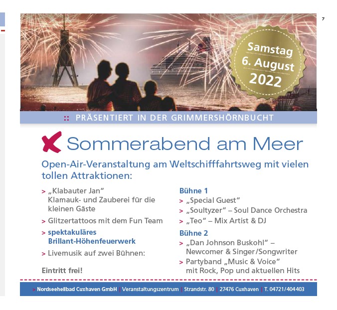 > Nordseeheilbad Cuxhaven GmbH | Veranstaltungszentrum | Strandstr. 80 | 27476 Cuxhaven | T. 04721 / 404 403