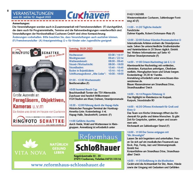 Veranstaltungen der Nordseeheilbad Cuxhaven GmbH sind ohne Kennzeichnung.