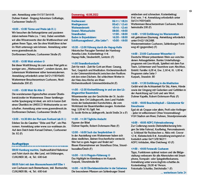 Strand-/Wattaufsicht: 08:00 - 19:00