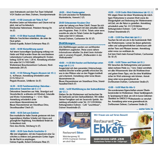 Lebensräume Cuxhavens nähergebracht. Kostenbeitrag: