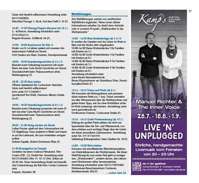 04721/404403 (Mo.-Fr. 10-12 Uhr). Einlass ab