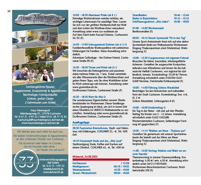Strand-/Wattaufsicht: 08:00 - 19:00