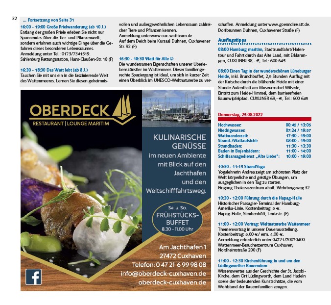 Anmeldung erforderlich unter 04721/70070400.