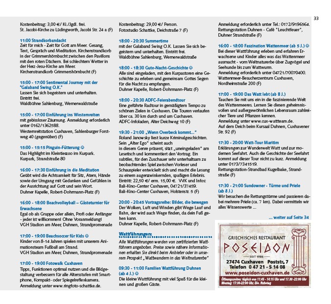 Kostenbeitrag: 3,00 J/ Ki./Jgdl. frei.