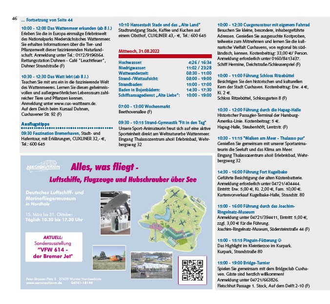 Anmeldung unter 04721/394411, Eintritt: 5,00 J,