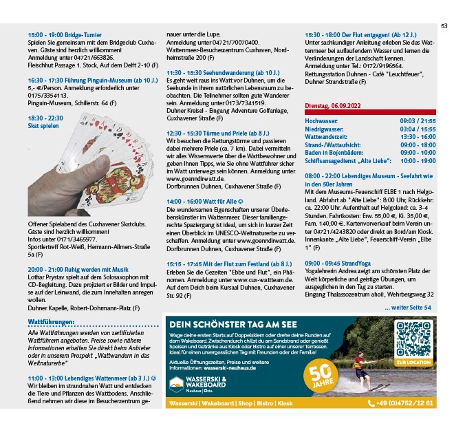04721/4243820 oder direkt an Bord/am Kiosk.