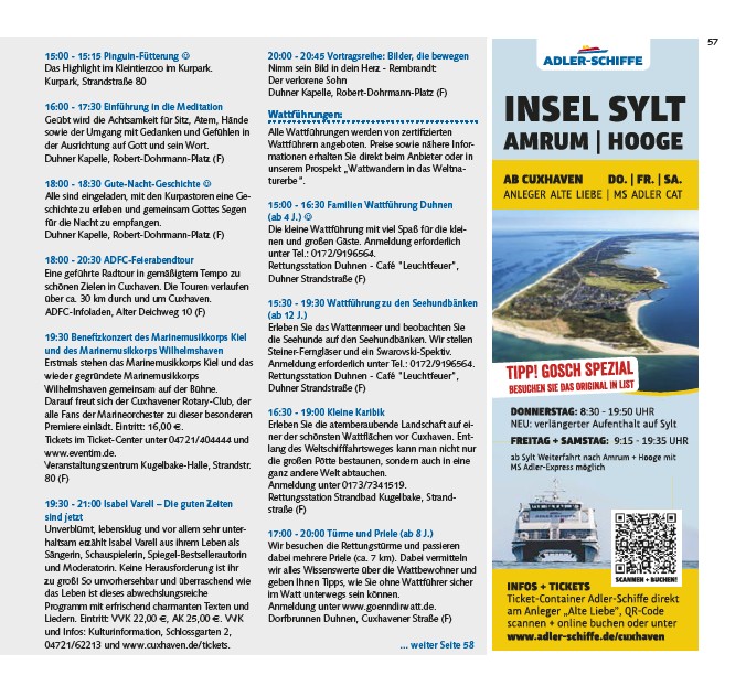 04721/62213 und www.cuxhaven.de/tickets.