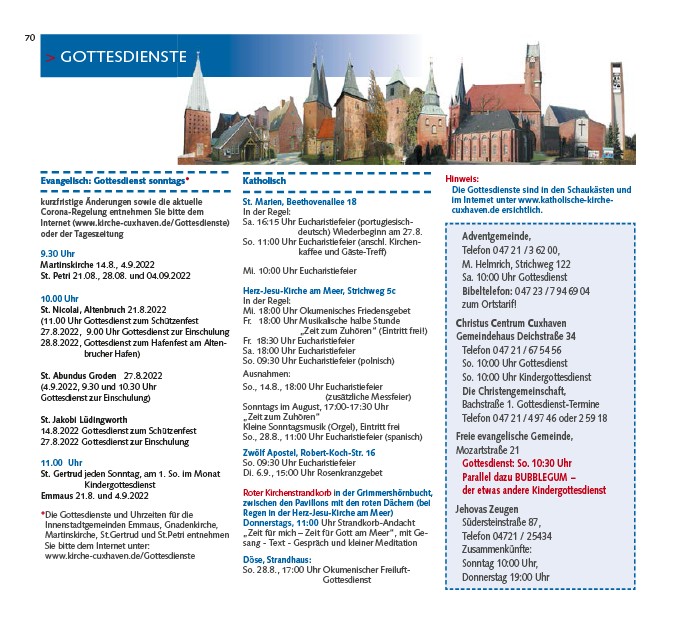 Internet (www.kirche-cuxhaven.de/Gottesdienste)