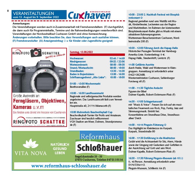 Veranstaltungen der Nordseeheilbad Cuxhaven GmbH sind ohne Kennzeichnung.