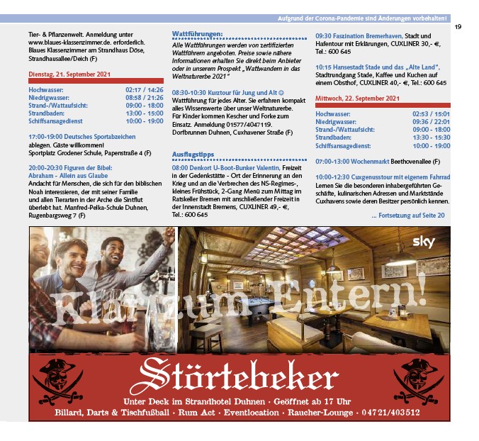 Aufgrund der Corona-Pandemie sind Änderungen vorbehalten!