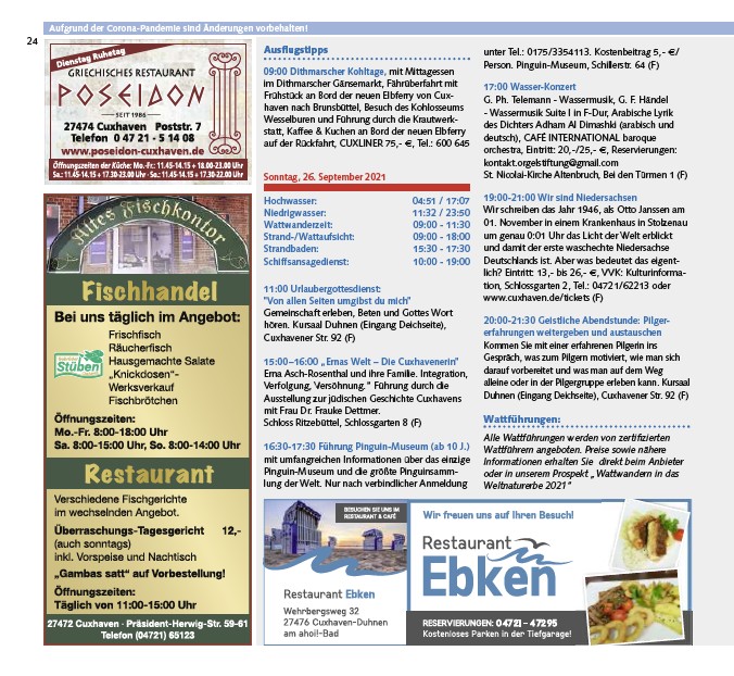 Aufgrund der Corona-Pandemie sind Änderungen vorbehalten! Ausflugstipps