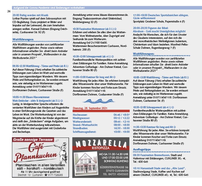 Strand-/Wattaufsicht: 09:00 - 18:00