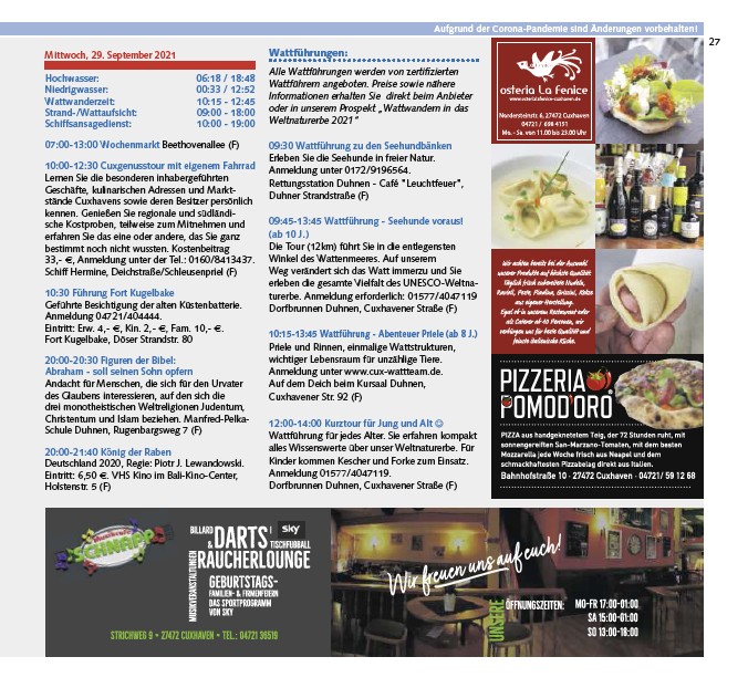 Aufgrund der Corona-Pandemie sind Änderungen vorbehalten!
