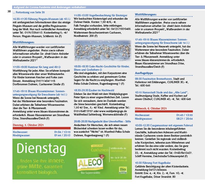 Aufgrund der Corona-Pandemie sind Änderungen vorbehalten! ... Fortsetzung von Seite 35