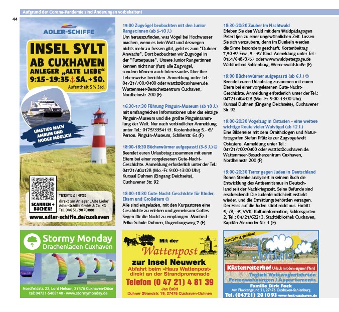 Aufgrund der Corona-Pandemie sind Änderungen vorbehalten!